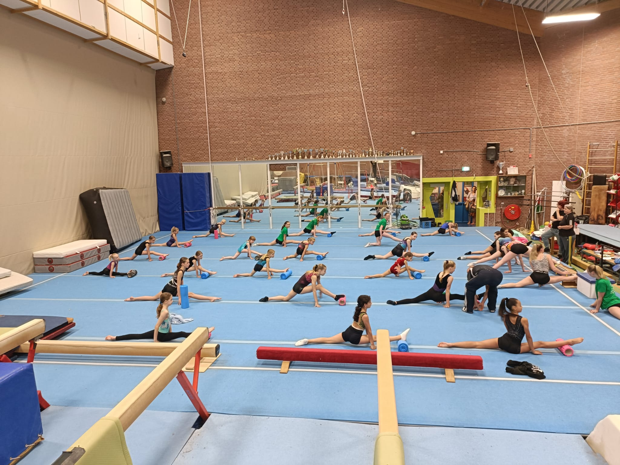 We turnen met het gebruik van ringen, de lange mat, de brug, de brug ongelijk, de hoog en laag rekstok, de air trampoline en de evenwichtsbalk.